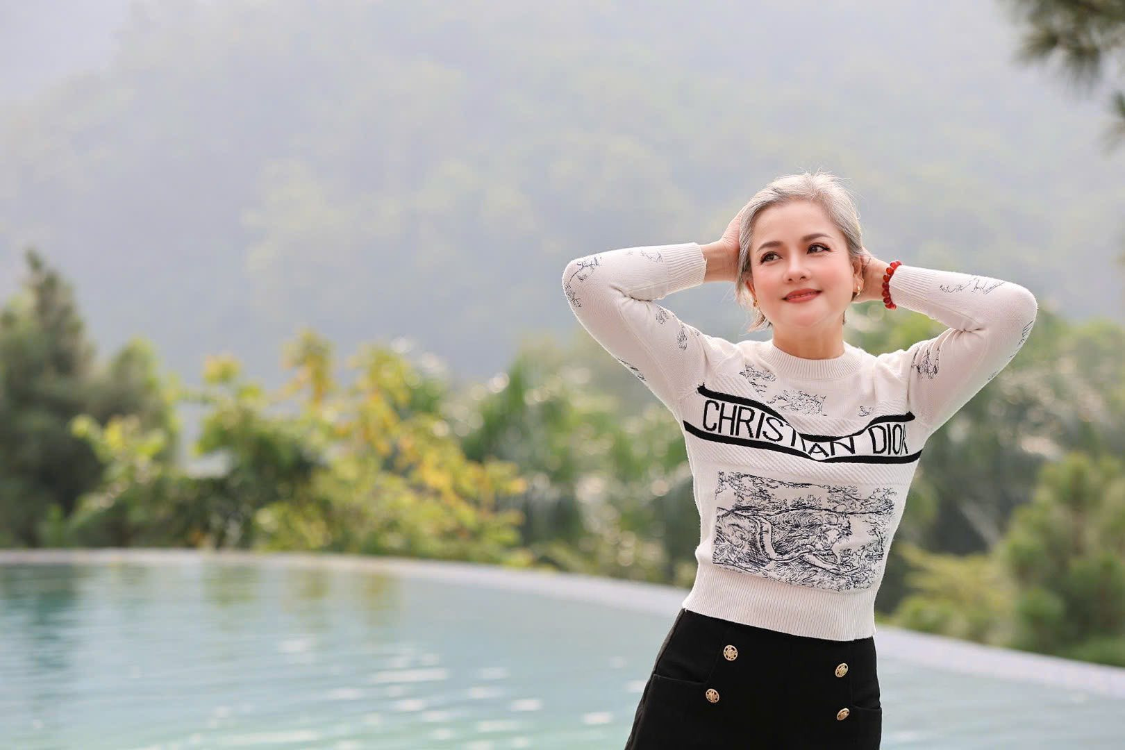 Không nhuộm tóc, không che giấu dấu vết thời gian, NSND Thu Quế chọn cách đón nhận tuổi tác một cách nhẹ nhàng. Mái tóc bạc không còn là biểu tượng của sự già nua mà trở thành dấu ấn của trải nghiệm, của một hành trình sống đủ đầy.