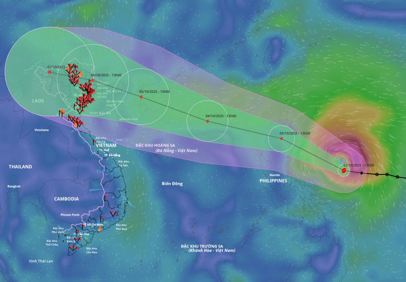 Vào 13h chiều nay (2/10), tâm bão trên vùng biển phía đông Philippines với sức gió mạnh nhất vùng gần tâm bão mạnh cấp 8 (62-74km/giờ), giật cấp 10. Những giờ qua, bão di chuyển nhanh theo hướng tây tây bắc, tốc độ khoảng 25km/h.