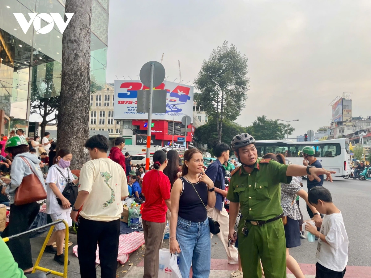Dọc các tuyến đường Nam Kỳ Khởi Nghĩa, Tôn Đức Thắng, Lê Lợi và Nguyễn Huệ, dòng người đổ về mỗi lúc một đông, đặc biệt tại các giao lộ, nơi đoàn diễu binh sẽ đi qua.