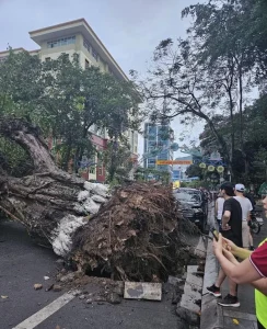 Miền Bắc mưa dông, quật đổ cây đa lớn ở Hà Giang
