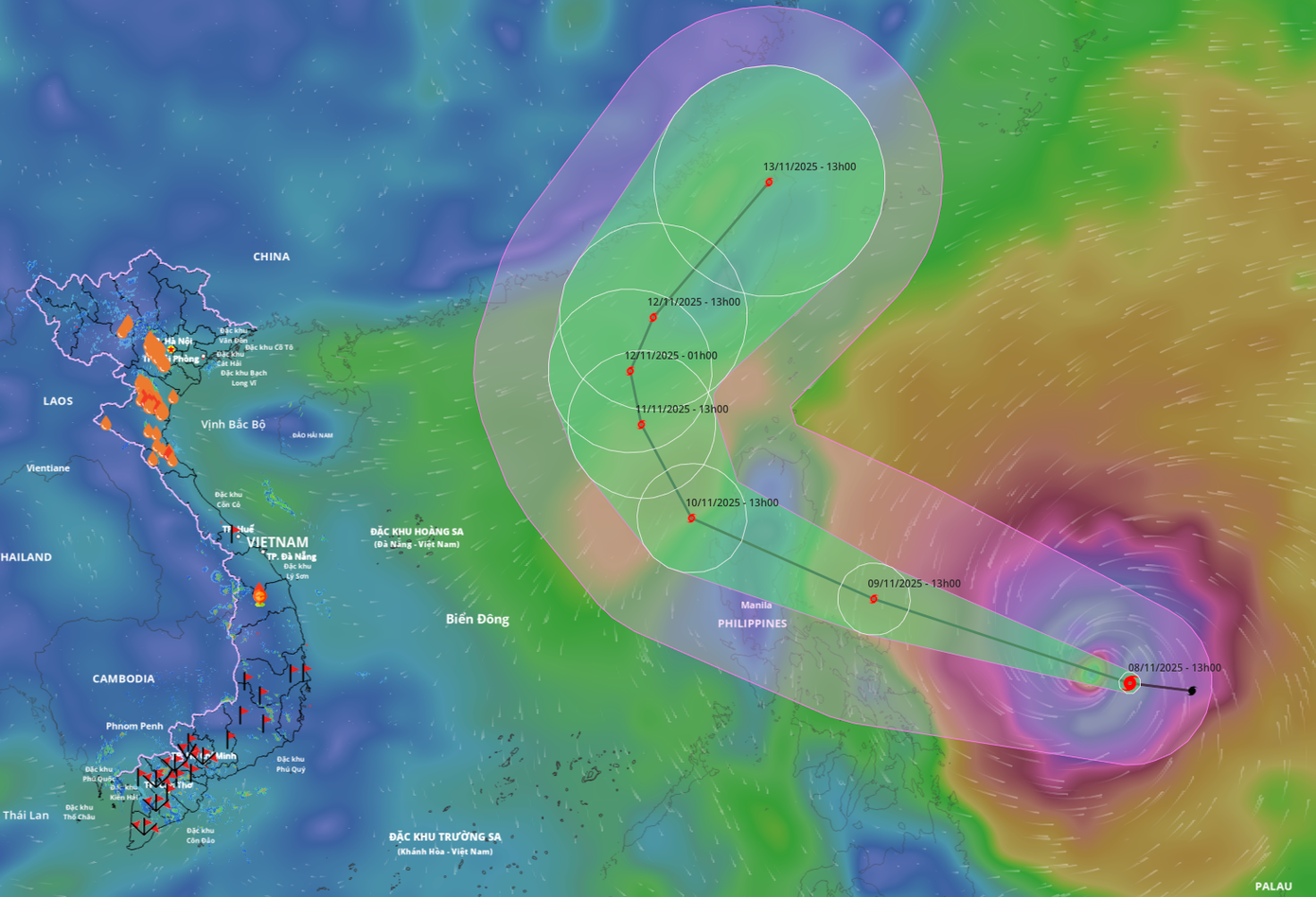Ngay sau khi cơn bão Kalmaegi đổ bộ đất liền khu vực Nam Trung Bộ nước ta, ngoài khơi Philippines tiếp tục hình thành một cơn bão rất mạnh có tên quốc tế là Fung-Wong. Đây là cơn bão đặc biệt với kích thước khổng lồ, đường kính lên tới 1400km.