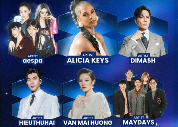 8Wonder Winter 2025 – “Symphony of Stars” ban đầu giới thiệu các nghệ sĩ quốc tế sẽ đến Việt Nam như Alicia Keys – huyền thoại âm nhạc sở hữu 17 giải Grammy, Dimash, nhóm nhạc Kpop aespa cùng dàn nghệ sĩ Việt là Văn Mai Hương, Hieuthuhai, Maydays.