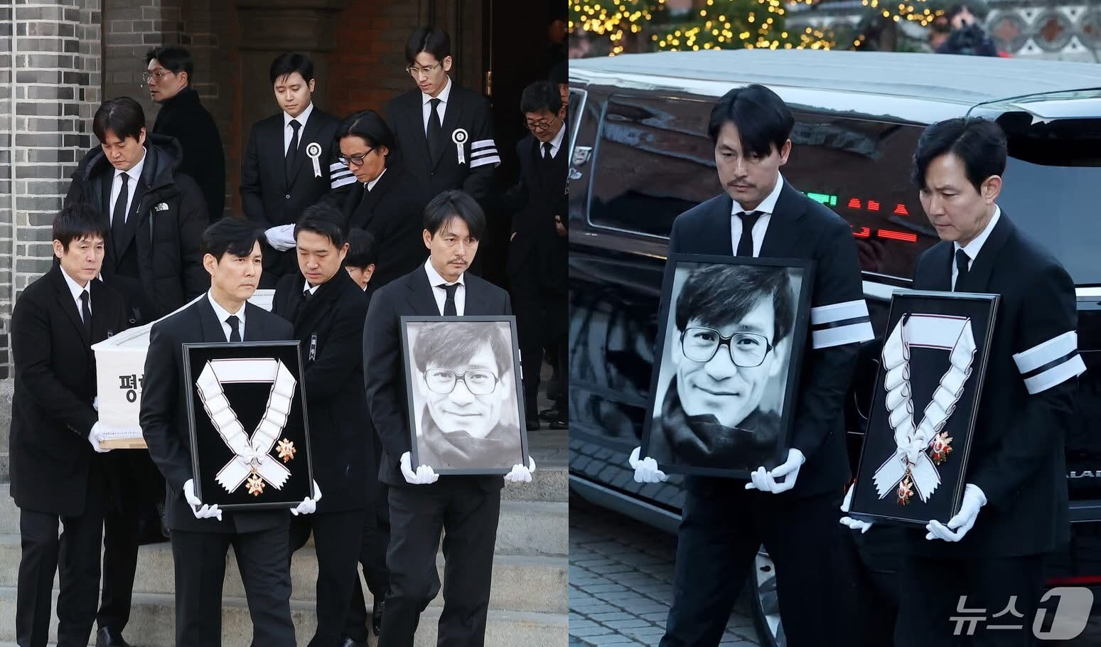 Hyun Bin, Byun Yo Han và Jung Joon Ho cũng có mặt từ sớm tham dự nghi thức di quan tại nhà tang lễ trước khi đến Nhà thờ Myeongdong. Ngoài ra, các nghệ sĩ như Jung Hye Sun, Kim Jong Soo, Kim Na Woon, Yoo In Chon và đạo diễn Im Kwon Taek cũng đến tiễn biệt tiền bối.