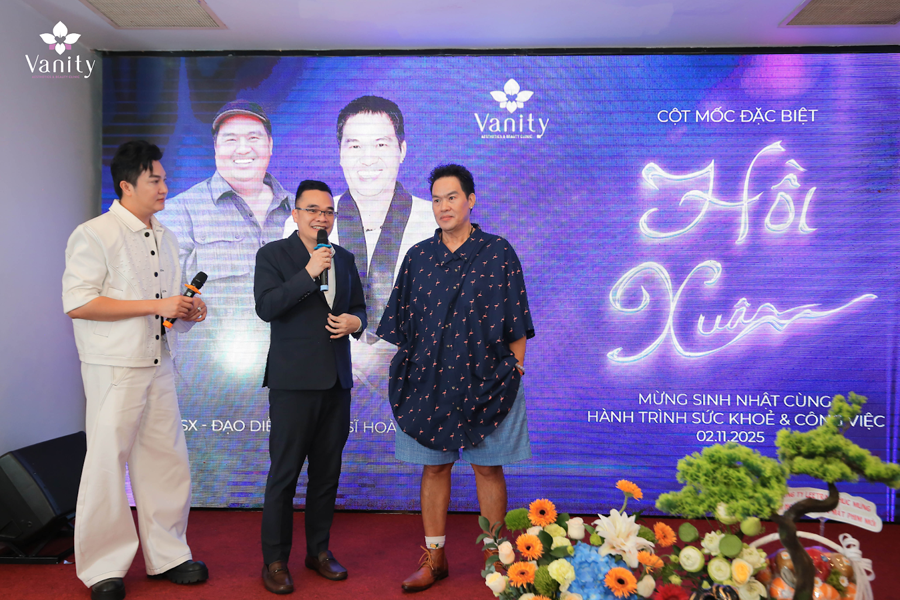 Bác sĩ Huỳnh Ngọc Hưng cũng chia sẻ về quá trình điều trị giúp nghệ sĩ Hoàng Mập đạt được kết quả vượt ngoài mong đợi, đồng thời bày tỏ lòng tri ân đến các nghệ sĩ đã tin tưởng và lựa chọn Vanity là người bạn đồng hành vì sức khỏe.