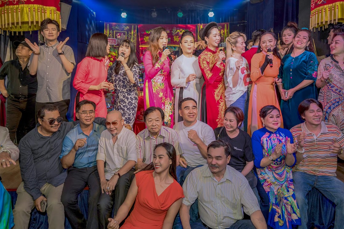 NSND Trịnh Kim Chi chụp hình kỷ niệm cùng quan khách tham dự buổi lễ Ban Ái Hữu Nghệ Sĩ Hội Sân Khấu Tp HCM