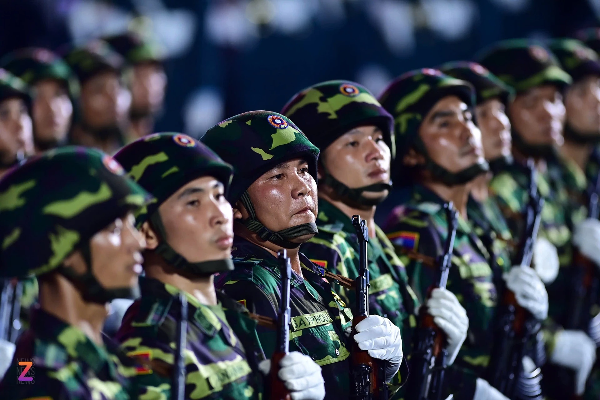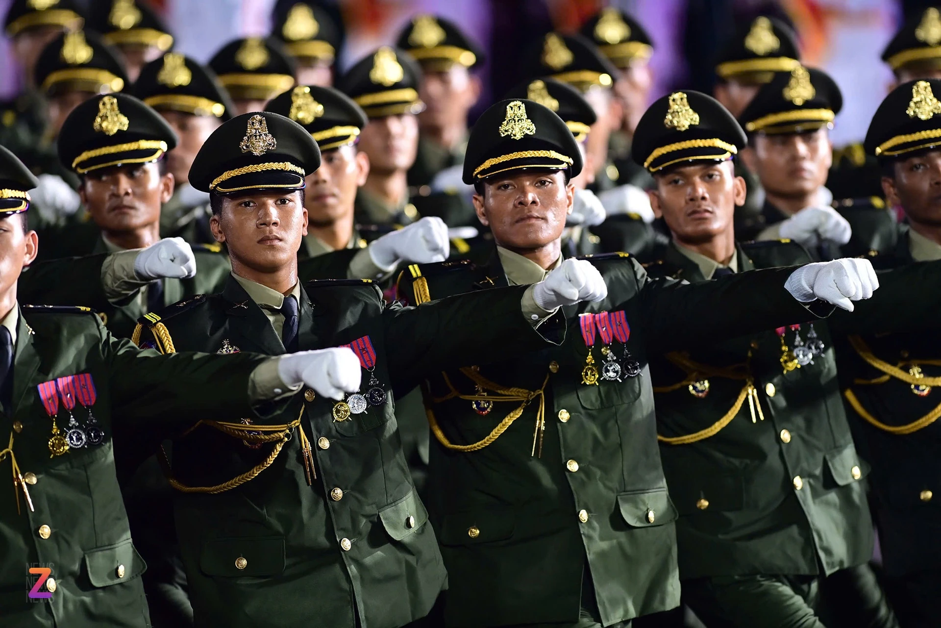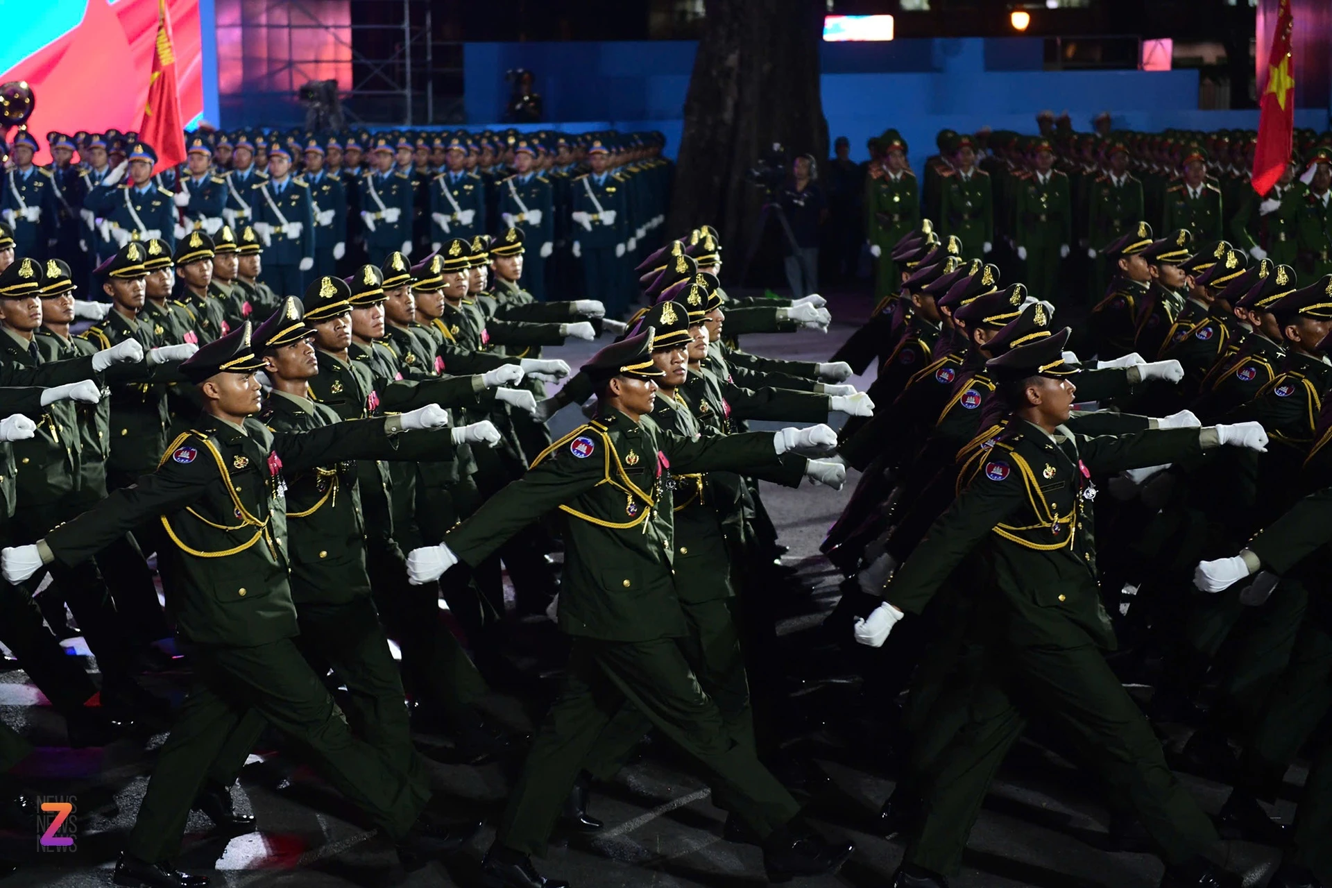 Các chiến sĩ thực hiện động tác vung tay dứt khoát, thể hiện tác phong kỷ luật đặc trưng của quân đội Campuchia. Các chiến sĩ của quân đội Hoàng gia Campuchia cũng được bố trí nghỉ ngơi và tập luyện tại tỉnh Bình Dương. Sự tham gia của lực lượng quân đội 3 nước Lào, Campuchia và Trung Quốc trong lễ diễu binh, diễu hành nhận được nhiều tình cảm, cổ vũ từ phía người dân Việt Nam.