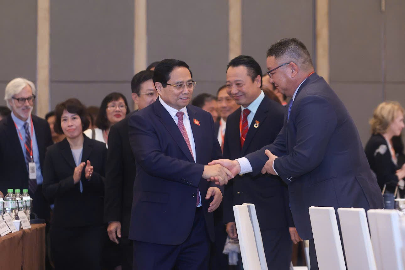 Về các kiến nghị, đề xuất của doanh nghiệp, Thủ tướng nêu rõ, Việt Nam luôn cởi mở, cầu thị, sẵn sàng đối thoại thẳng thắn, cùng nhau tìm kiếm giải pháp, tháo gỡ các khó khăn, vướng mắc để thúc đẩy phát triển kinh tế nhanh và bền vững với giải pháp cốt lõi là chuyển đổi xanh, chuyển đổi số. Tinh thần “không có gì là không thể”, “cùng lắng nghe, cùng thấu hiểu, cùng niềm tin, cùng khát vọng, cùng làm, cùng thắng, cùng hưởng”, “lợi ích hài hòa, rủi ro chia sẻ”.