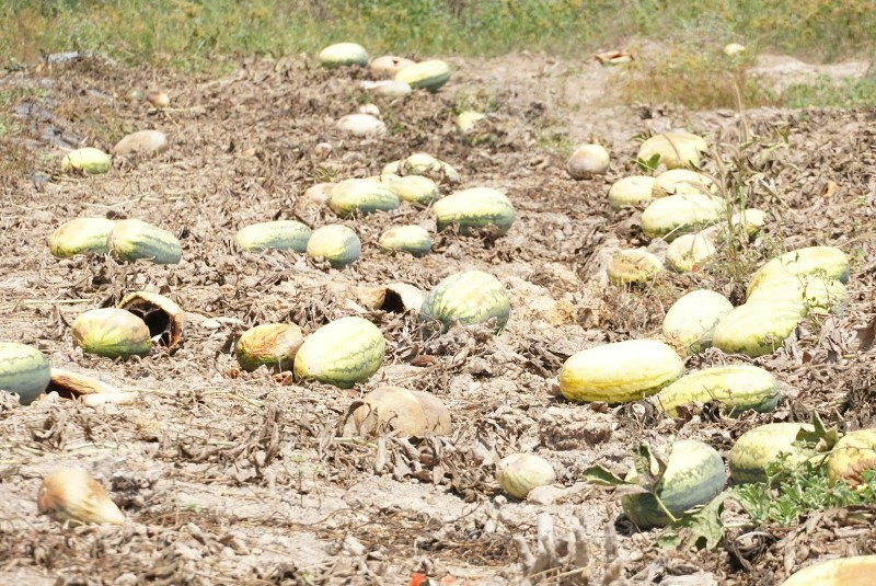 Hàng chục ha dưa hấu không được thu hoạch, bị bỏ thối, gây thiệt hại nhiều tỷ đồng. Ảnh: L.K