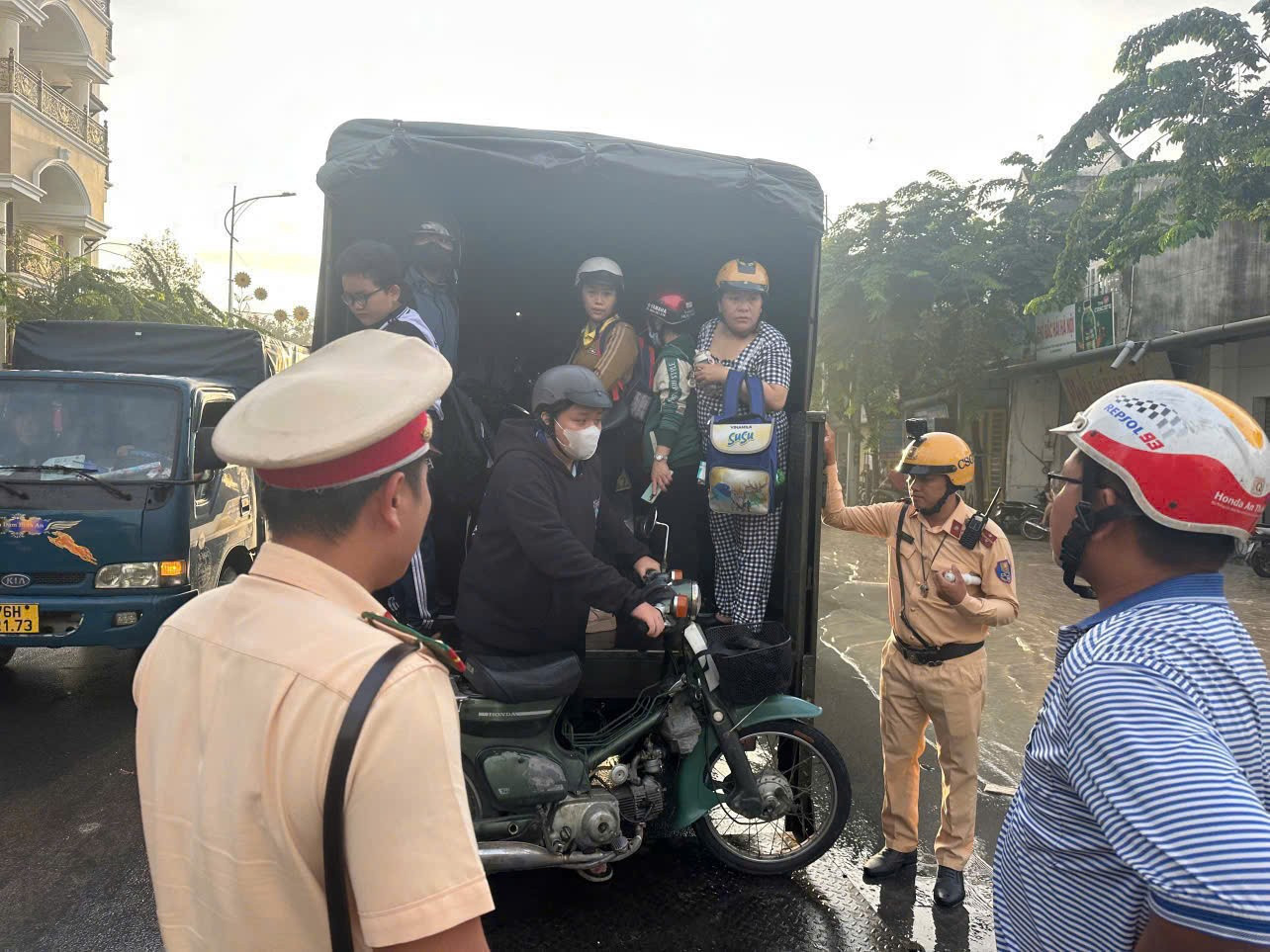 Trước tình hình trên, Phòng CSGT đã chủ động bố trí lực lượng tại các điểm ngập nặng, khu vực dễ ùn tắc và những tuyến đường ven sông, kênh rạch để hướng dẫn, phân luồng, hỗ trợ người dân di chuyển an toàn. Lực lượng sẽ túc trực 24/24 tại các chốt trọng điểm, sẵn sàng cứu hộ phương tiện chết máy, đưa người dân ra khỏi khu vực ngập sâu.