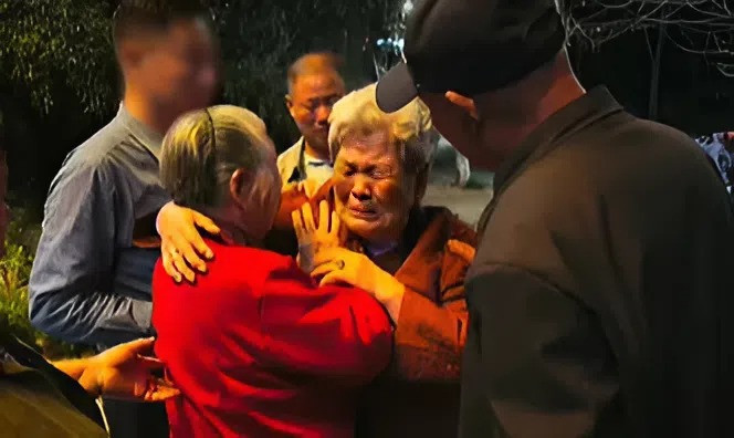 Cuộc gặp gỡ người thân đầy xúc động của cụ bà sau nhiều năm xa cách. Ảnh: QQ