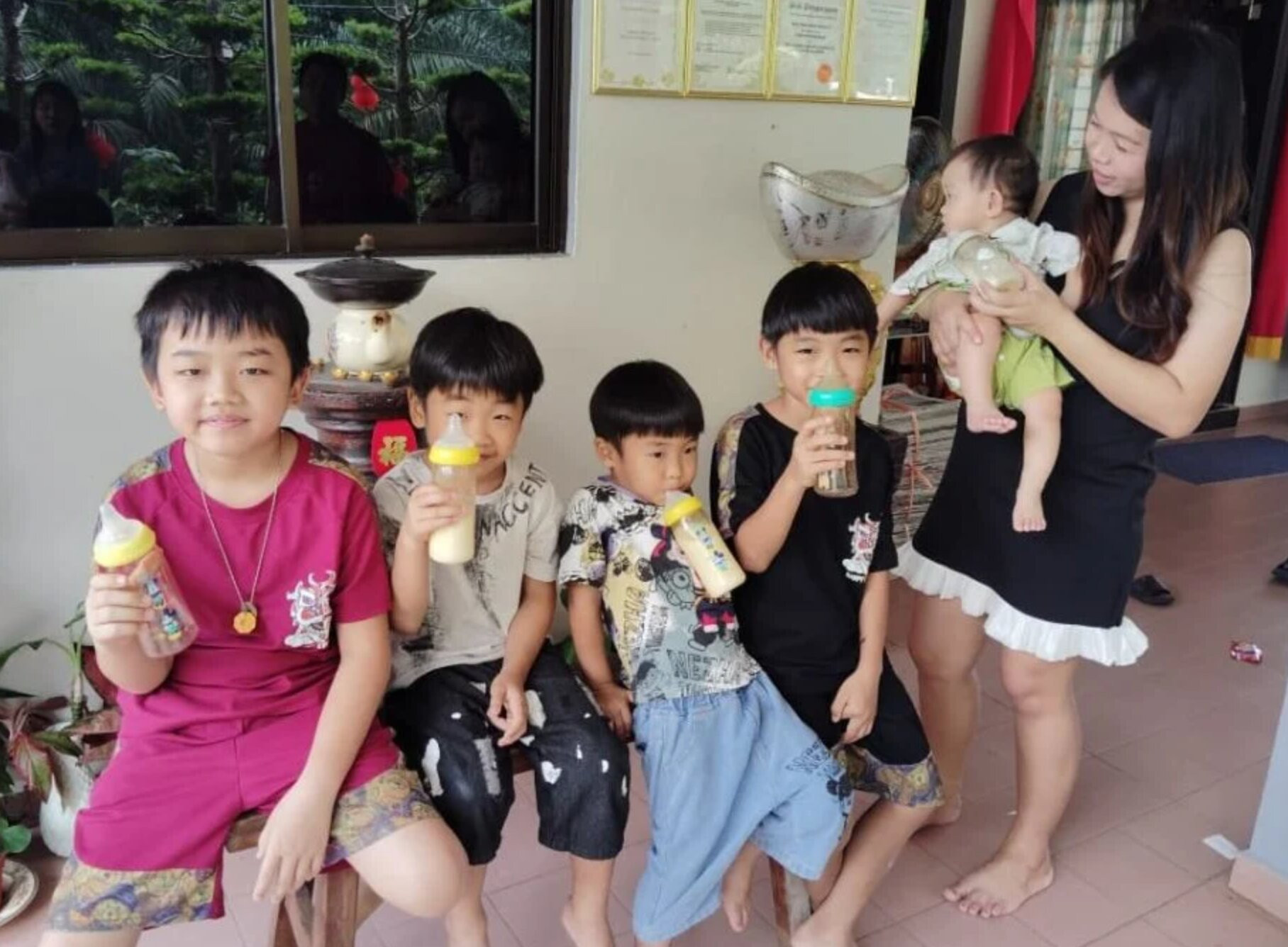 Gia đình đông con, mỗi tháng hết hơn 20 hộp sữa bột. Ảnh: Sinchew