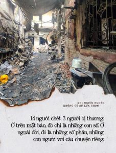 14 người chết. 3 người bị thương. Ở trên báo, đó là một sự tổng kết. Ở ngoài đời, đó là 14 gia đình từ nay đã vĩnh viễn mất đi người thân yêu, là 3 người sẽ mãi mãi sống với dư chấn về một đêm kinh hoàng. Là nỗi lo sợ sẽ tiếp tục đè nặng hàng trăm nghìn người lao động khác đang sinh sống ở khắp đô thị. Là những cuộc điện thoại, những tin nhắn gấp gáp trong sáng nay của hàng nghìn gia đình ở quê cho các con cháu trên thành phố vì hoảng sợ sau khi đọc tin trên mạng. Và cũng là nỗi ám ảnh khi họ biết rằng, sau tất cả, họ vẫn không có khả năng để chi trả cho những lựa chọn an toàn hơn.